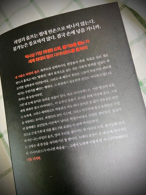 처음에는 이게 보석을 훔치는 것과 무슨 관련이 있을지 궁금했었는데 이야기가 진행될 수록 2단계, 3단계 보석을 향해 접근해 가는 라일리의 작전을 보는 재미가 있었습니다.