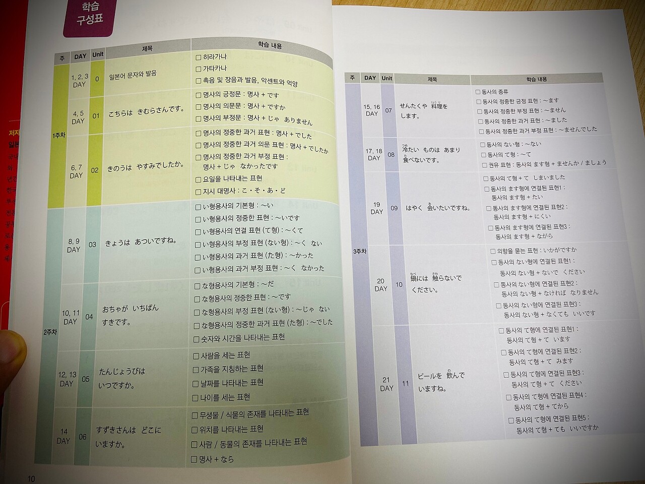 학습구성표를 보시면 하루 한 시간씩 한 달 안에 마스터 하는 것을 목표로 하고 있습니다.