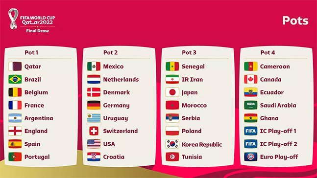 3월 FIFA 랭킹 기준으로 포트가 배정됐구요, 아직 결정되지 않은 플레이오프 3팀은 4번 포트에 배정이 됩니다.